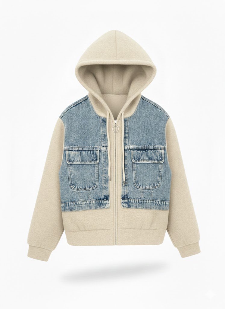 Be the first to review “Hooded Pocket Denim Sweatshirt-beige”